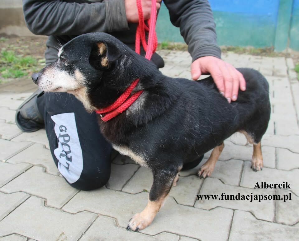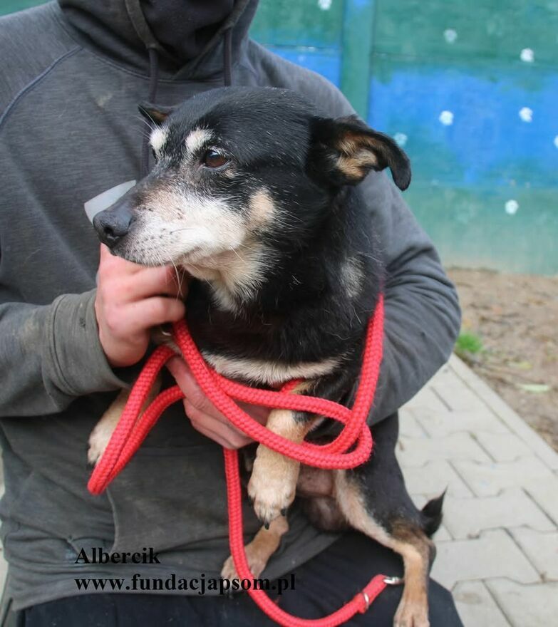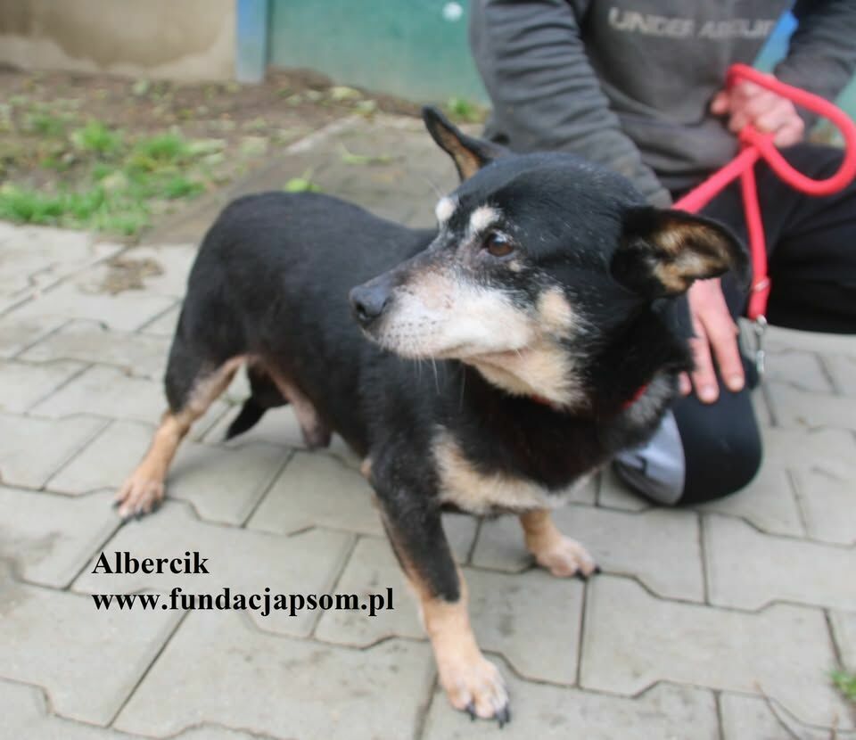 Albercik to mały piesek, który przyjechał do nas z Legionowa. Jest po trudnych przeżyciach, błąkał się razem z sunią ale niestety sunia została potrącona śmiertelnie przez samochód. Albercik nie odstąpił jej jednak na krok, czuwał przy niej. Do schroniska przyjechał przestraszony, ale jest bardzo proludzki, szuka oparcia w człowieku. Pozwala brać się na ręce, przytula się, ładnie chodzi na smyczy. Szukamy ciepłego domku dla Albercika.
