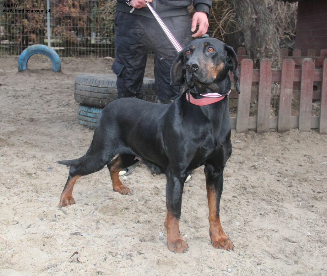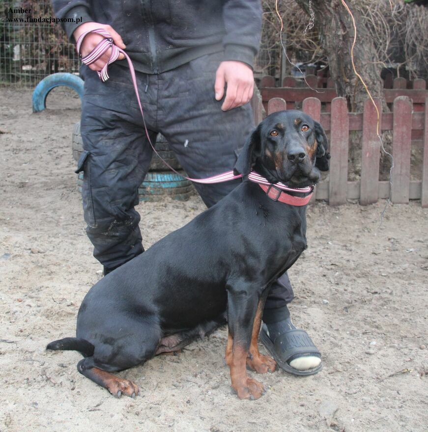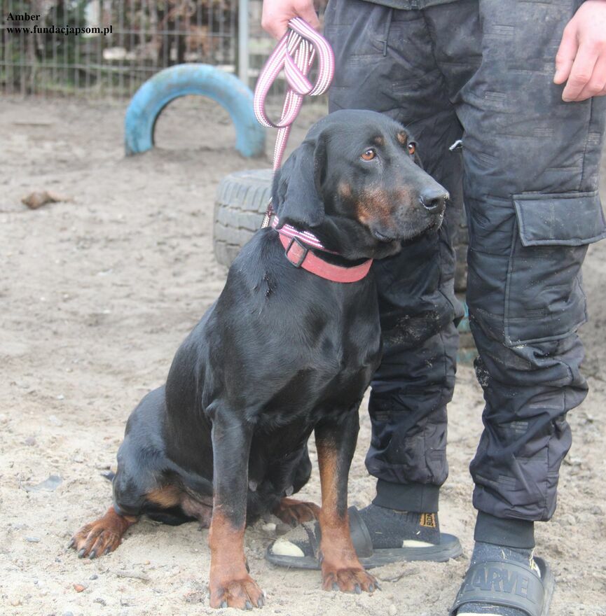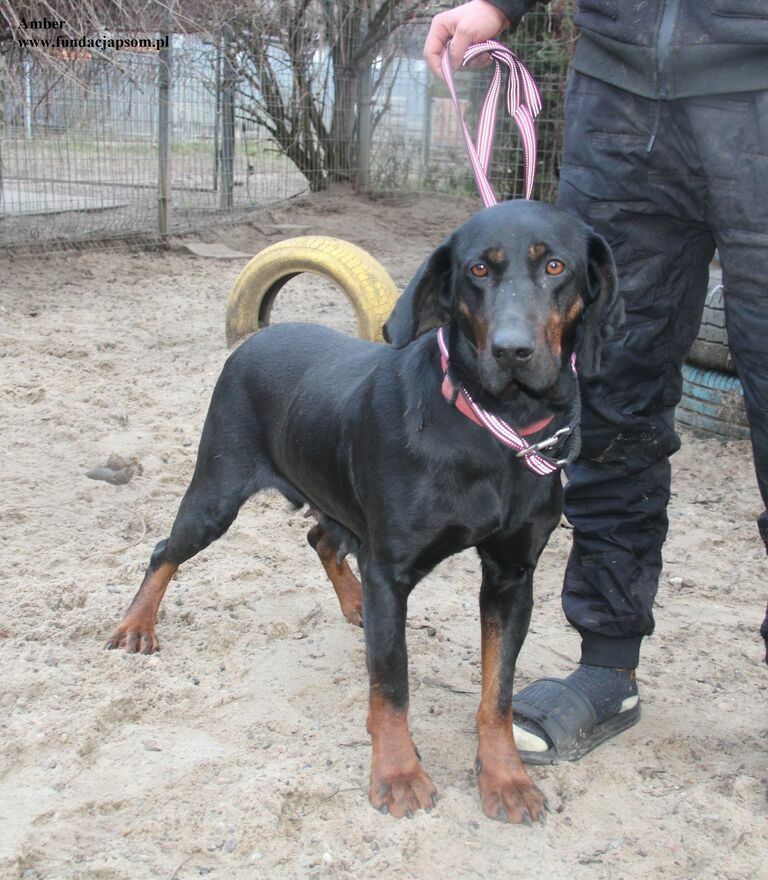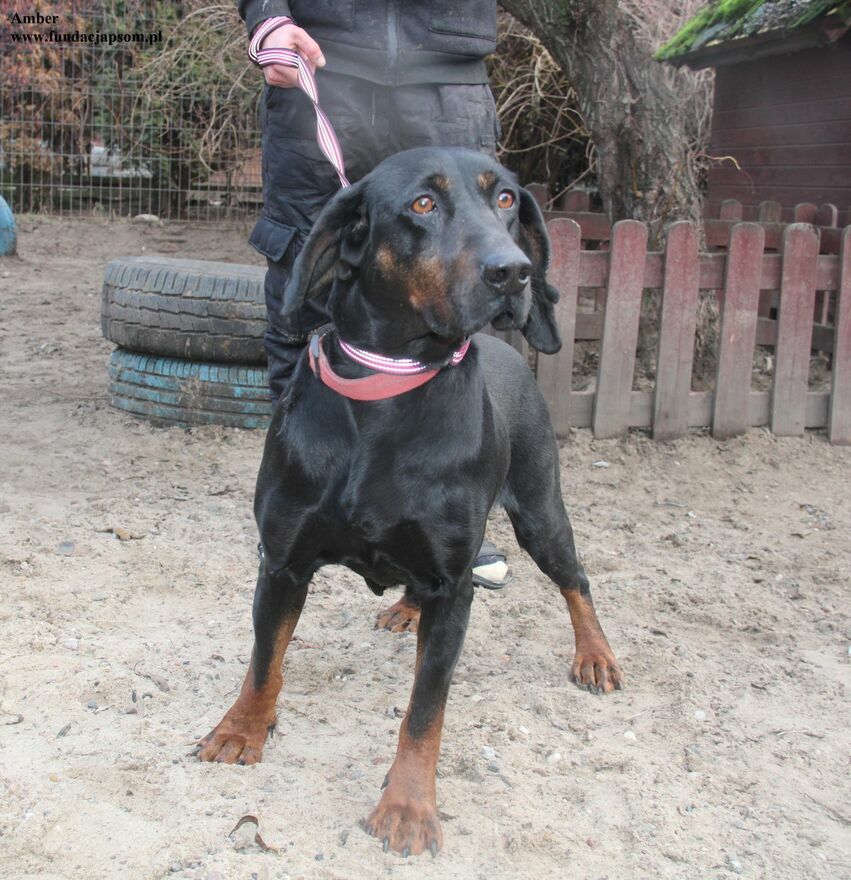 Amber to około 6 letnia suczka, która trafiła do nas z Wieliszewa. Sunia jest bardzo przyjazna w stosunku do człowieka, uwielbia być głaskana, podchodzi do opiekuna i zaprasza do miziania, oraz wspólnej zabawy. Suczka jest bardzo pro ludzka, widać, że zależy jej na człowieku, lubi być w centrum uwagi, nie odstaje od swojego opiekuna, nie chce się oddalać.