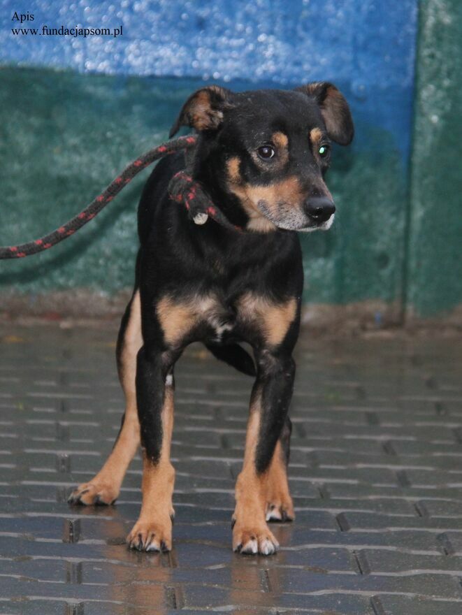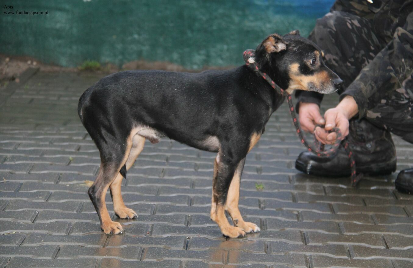 Apis trafił do nas z terenu gminy Ostrów Mazowiecka. Jest dość młodym, koło 4-letnim psem z elegancką prezencją i nieujawnionymi jeszcze w pełni pokładami miłości do ludzi, choć szybko robi postępy. Mimo lęku związanego z nową dla niego sytuacją pomału nabiera zaufania. Ładnie chodzi na smyczy, zachowuje się przyjaźnie aczkolwiek potrzebuje czasu by nawiązać prawdziwą więź z człowiekiem.