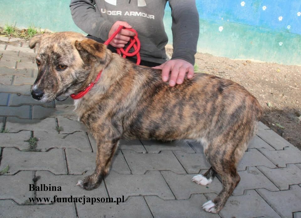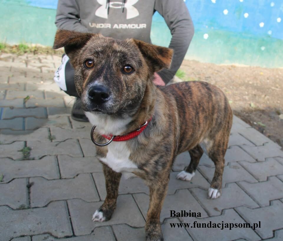 Balbina przyjechała do nas z Komorowa gm. Ostrów Mazowiecka. To niewielkich rozmiarów sunia o niespotykanym umaszczeniu - taki trochę bokser, trochę tygrys Do tego jeszcze jej sierść jest niezwykle jedwabista. Ma cudny charakter, jest bardzo przytulaśna, uwielbia głaskanie i drapanki. Wchodzi na kolana, przytula się. Ładnie chodzi na smyczy. Szukamy domu, który pokocha Balbinkę już na zawsze.