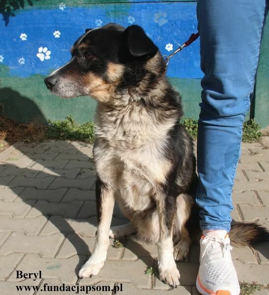 Beryl to średniej wielkości pies, ok 5 letni. Jest zrównoważony, spokojny, bardzo przyjazny z stosunku do człowieka i obojętny do innych psów. Umie chodzić na smyczy. Przyjechał do nas z Brwinowa, ma na sobie brązową obrożę z ćwiekami. Szukamy właściciela.