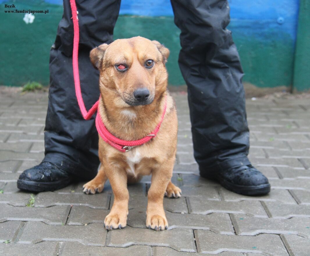 Bezik to piesek, który przyjechał do nas z Brwinowa, znaleziony na ulicy Kryniczanka 15 A, wraz ze swoim wiernym kompanem Kremikiem. Pieski przez kilka dni błąkały się razem po ulicach. Bezik ma około trzech lat. Na chwilę obecną jest pod naszą opieką lekarską z powodu chorego oczka.