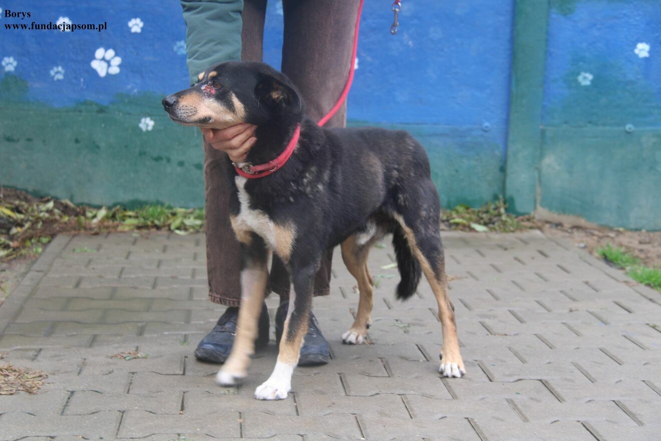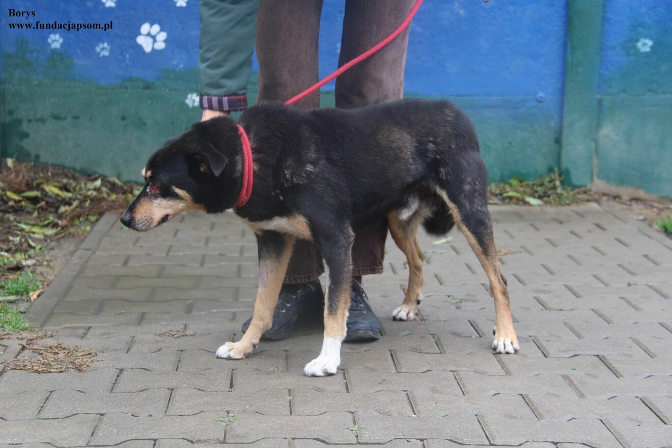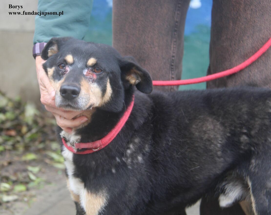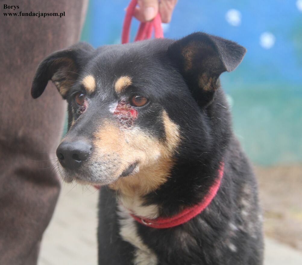 Borys- psiak znaleziony w Sochaczewie, piesek ma ropiejące rany w okolicach oczu, jest w tej chwili pod naszą opieką , oraz diagnostyką. Borys jest około dziewięcioletnim przyjacielskim pieskiem z nadal widoczną energią i zapałem do życia. Na tą chwilę pracujemy z pieskiem nad smyczą, ponieważ psiak podchodzi do niej z dystansem.