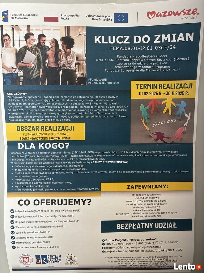 Zgłoś się do projektu \"Klucz do zmian\" i otrzymaj KOMPLEKSOWE WSPARCIE, które pomoże Ci: