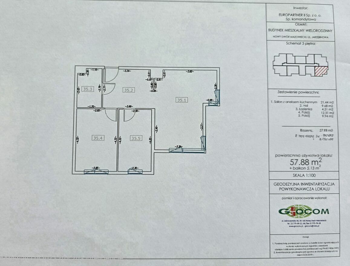 OpisSprzedam bezpośrednio komfortowe, 3-pokojowe mieszkanie o powierzchni 58 m² z przestronnym balkonem, położone przy ul. Jarzębinowej w Nowym Dworze Mazowieckim.