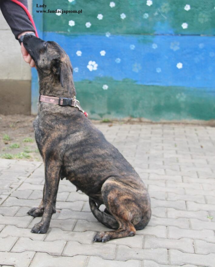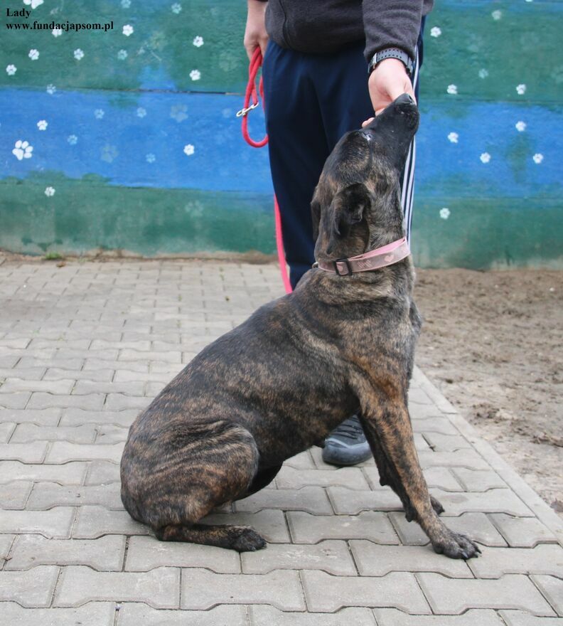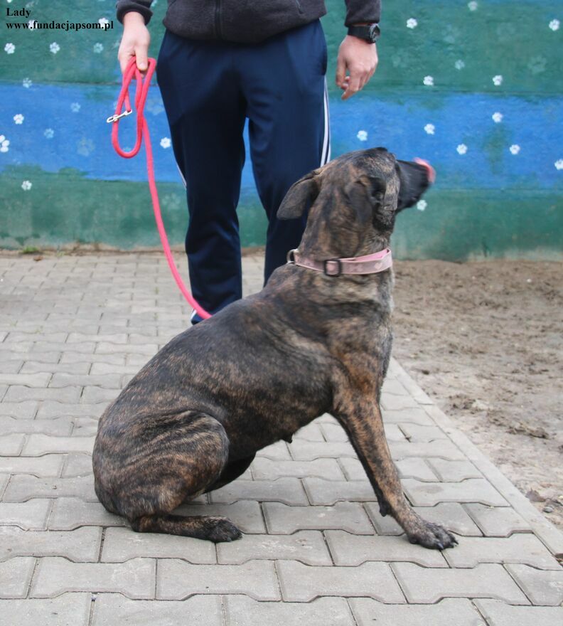 Lady to około 5-letnia suczka, która przybyła do nas z Długosiodła. Sunia jest bardzo przyjaźnie nastawiona na nowe otoczenie i nowe twarze, bez problemowo potrafi nawiązać z każdym więź. Lady jest spokojna i opanowana, podczas zakładania obróżki i smyczy cierpliwie czekała aż opiekun skończy wszystko zakładać by móc wyjść na spacerek. Suczka na smyczy nie ciągnie, zna podstawowe komendy i się do nich stosuje.