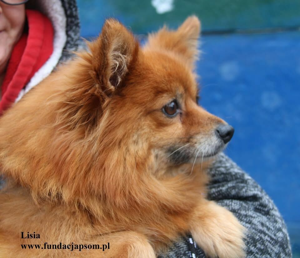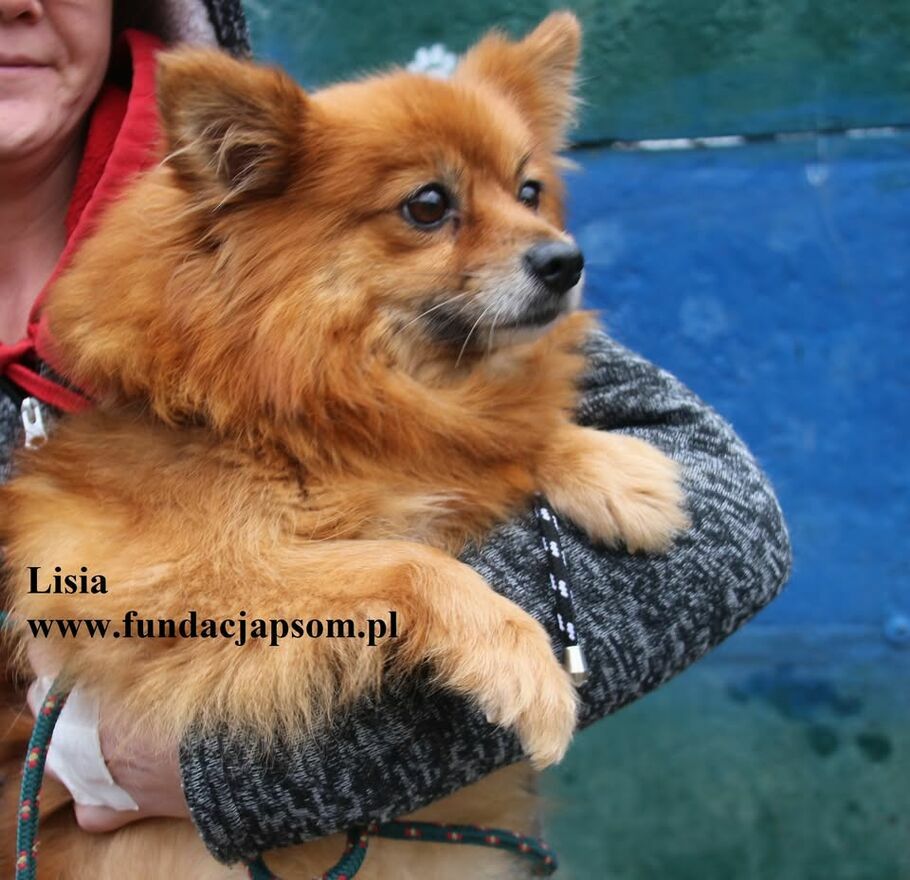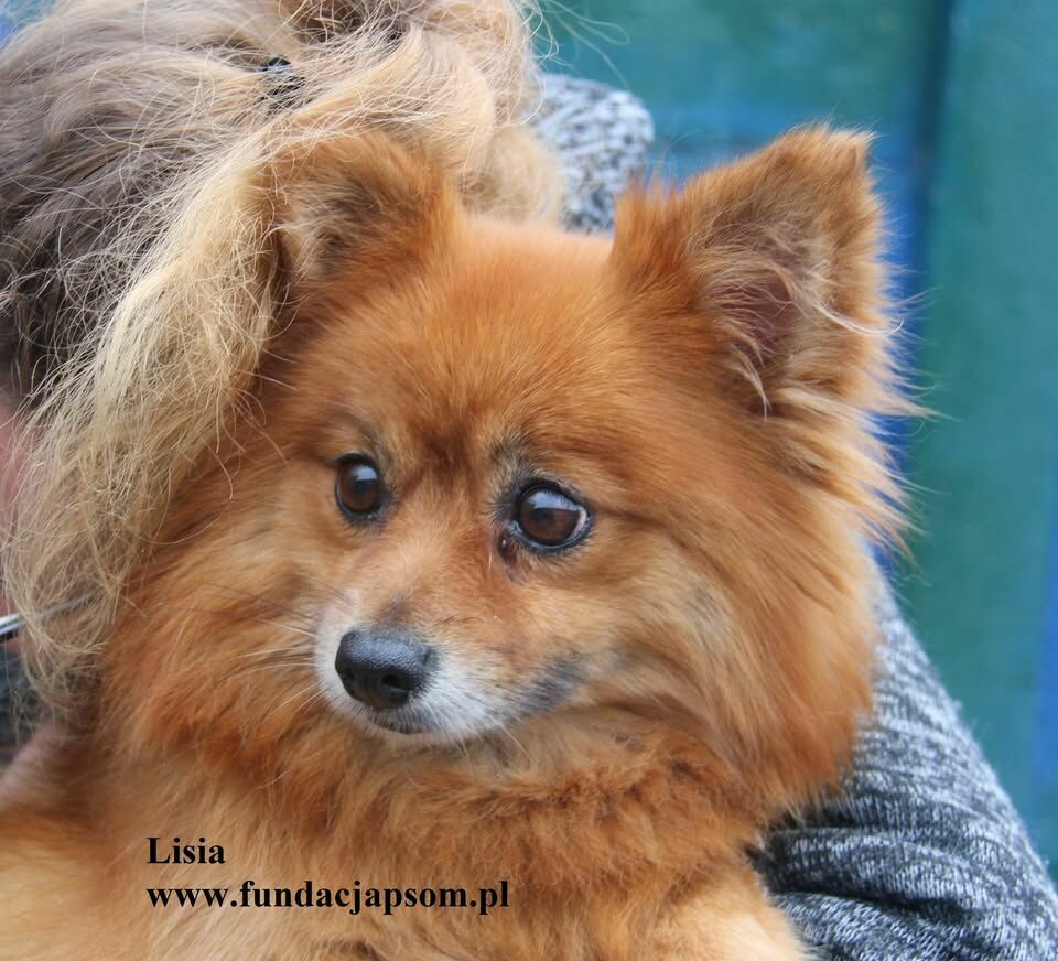 Lisia to ok. 4 letnia, niewielka sunia w typie pomeriana. Jest bardzo przyjacielska, przytulaśna, z chęcią wchodzi na kolanka i przytula się. Lisia jest nieco onieśmielona odgłosami schroniska. To piesek domowy, trudno jej się odnaleźć w warunkach schroniska. Lisia wymaga szczególnej pielęgnacji futerka, bo ma bardzo gęsty podszerstek. Zachęcamy do poznania i pokochania Lisi.