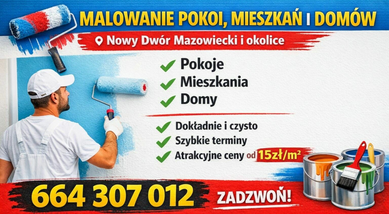 Profesjonalne malowanie pokoi, mieszkań i domów.Dokładnie, czysto i terminowo.