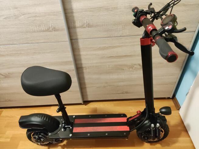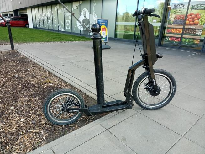Hulajnoga elektryczna. Silnik 350 W, akumulator 36 V 20 Ah. Zasięg – 50 km na jednym ładowaniu. Maksymalna prędkość ...