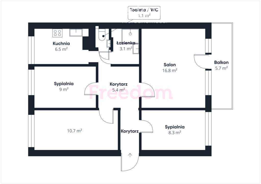 64,31 m² – 4 pokoje + osobna kuchnia balkon z widokiem na zieleń