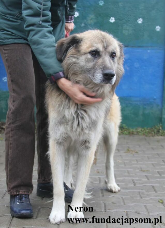 Neron przyjechał do nas z Sochocina. To uroczy przytulas w wielkim futrze. Marzyciel, smutas lgnący do człowieka. Uwielbia głaskanie. Jest spokojny, ułożony, nie ciągnie na smyczy. Błąkał się samotnie, przyjechał do nas wychudzony. Bardzo potrzebuje swojego miejsca, a co najważniejsze swojego człowieka. Szukamy kochającego domku dla Nerona.