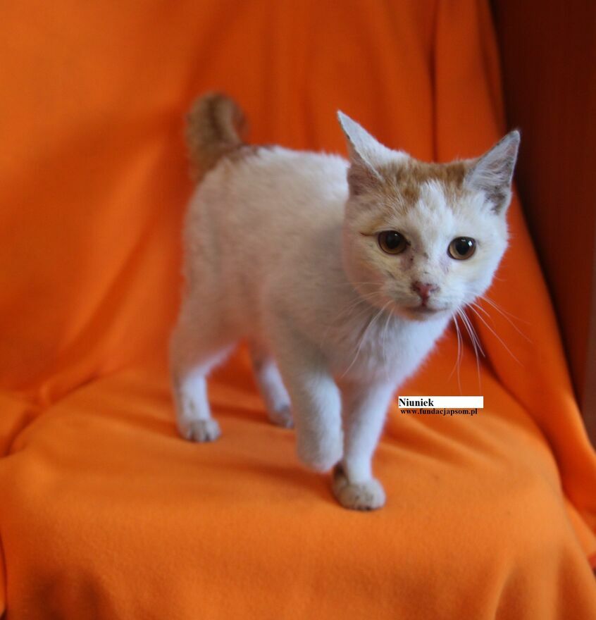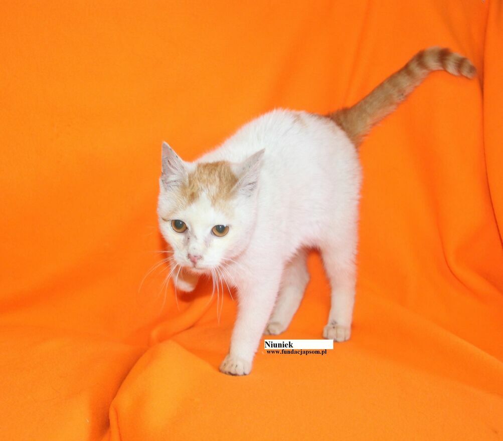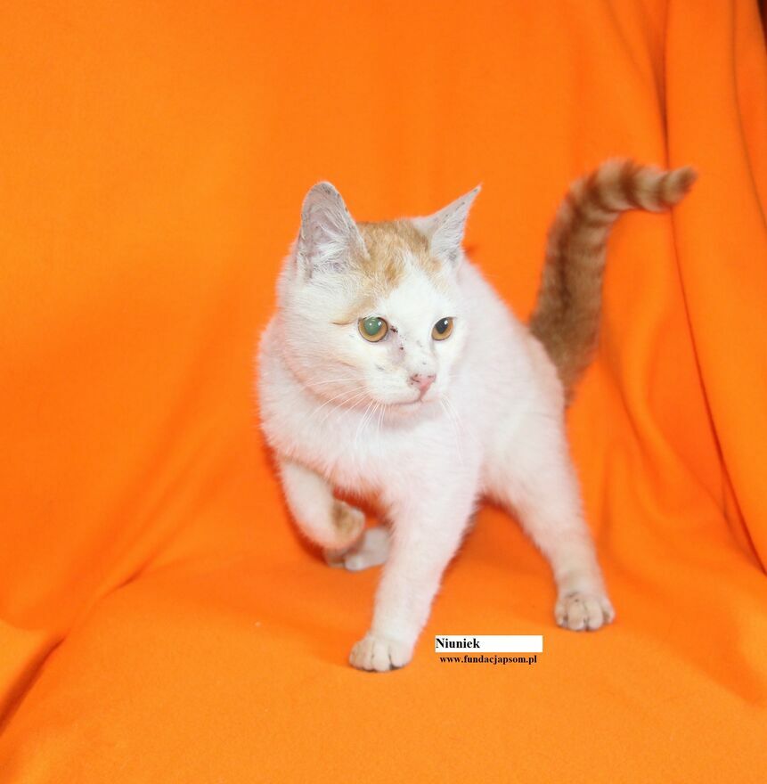 Niuniek to śliczny około półroczny koteczek, który przyjechał do nas z Czosnowa. Aktualnie ma koci katar i jest pod naszą opieką. Niuniek jest bardzo ufny w stosunku do człowieka, cały czas chce być w centrum uwagi, uwielbia łasić się do człowieka, przytulać i być cały czas na rękach przez co trudno było jej zrobić jej wyraźne zdjęcia, ponieważ wręcz biegł w stronę aparatu i człowieka. Niuniek to bardzo kochany, z pozytywnym nastawieniem na świat mały koteczek, który chce być blisko człowieka, potrzebuje bliskości i miłości.