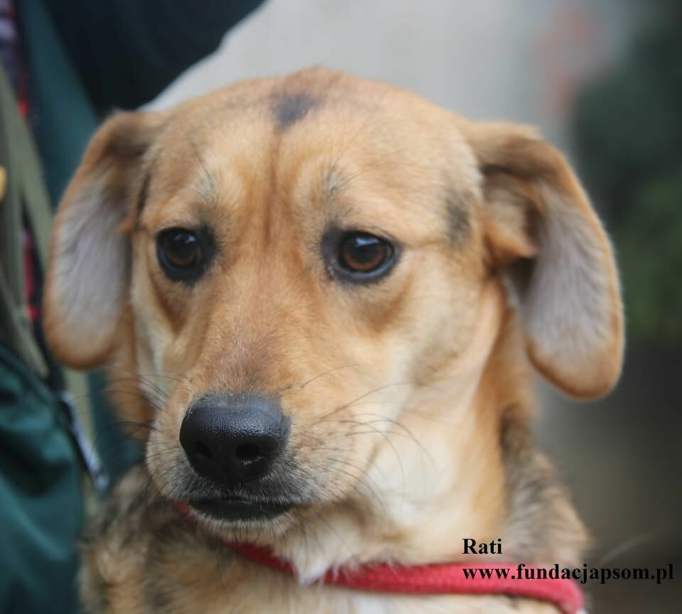 Do naszego schroniska z Długosiodła trafiła młoda ok 2,5 letnia suczka, delikatna i wrażliwa Rati. Ma piekną lśniącą sierść, mięciutkie futerko. Jest radosna i przyjazna, na widok opiekuna przybiega machając krótkim ogonkiem i kręcąc całą pupcią. Uwielbia smaczki. Akceptuje psy, w boksie za towarzysza ma pręgusa - Melmo. Po wyjściu z boksu, w towarzystwie ludzi, których nie zna jest nieco spięta. Potrzebuje czasu aby się otworzyć.