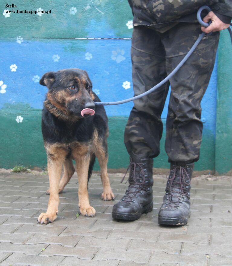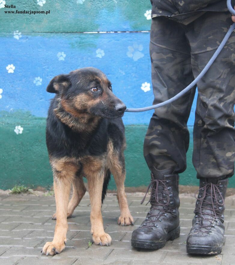 Stella to młodziutka około dwuletnia suczka, która przyjechała do nas z miejscowości Brańszczyk, znaleziona przy trasie S8 przy zjeździe na Niemiry. Stella jest pieskiem, który potrzebuje czasu na przyzwyczajenie się do nowego miejsca, jest na razie troszkę wystraszona i szuka oparcia w człowieku. Podchodzi do opiekuna i wkładając pyszczek pod rękę prosi go o dodanie jej otuchy, oraz głaski.
