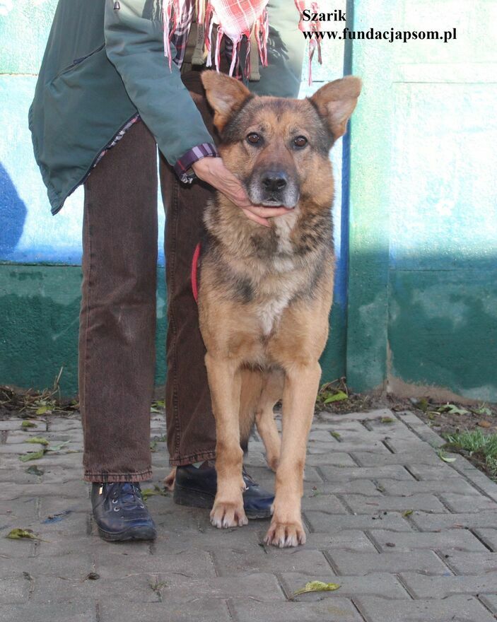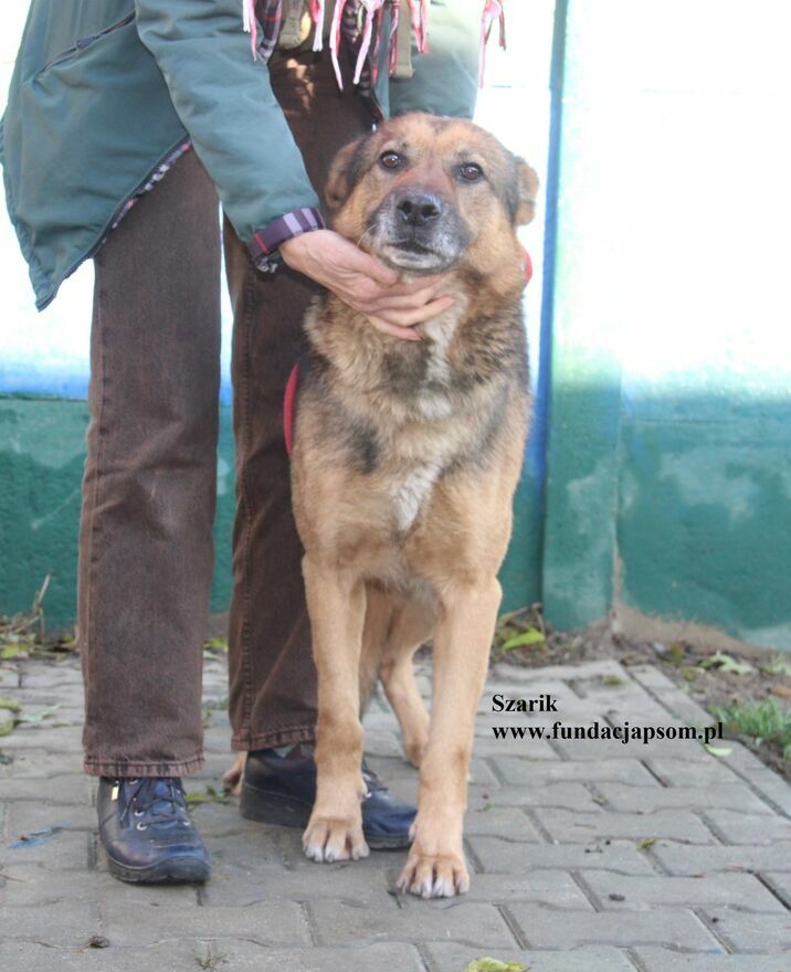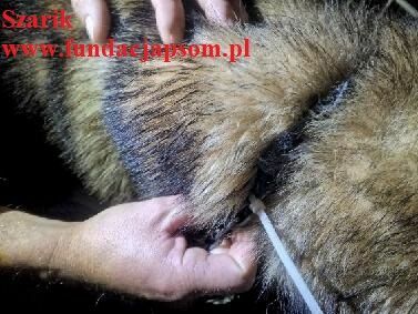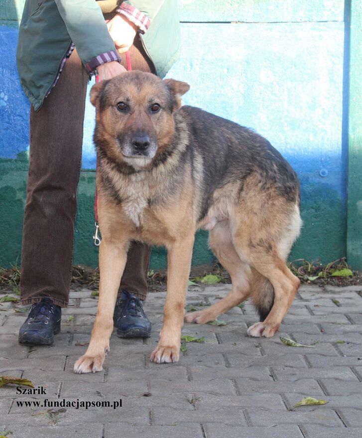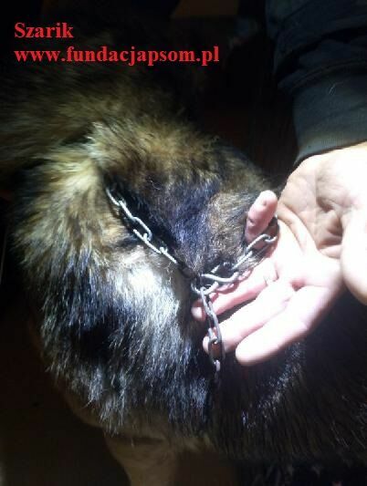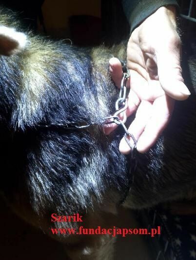 Szarik to około 5-letni piesek, który przyjechał do nas z Brańszczyka z Ojcowizny 24, psiak jest wychudzony i miał na sobie bardzo dużą ilość kleszczy. Pies został skrępowany łańcuchem i trytytkami – zrobiono z nich szelki, które oplatały całe to wychudzone ciałko. Nie wiemy czy piesek był tym sposobem przywiązany do drzewa i zdołał się uwolnić czy po prostu pseudo właściciel pożałował na szelki z prawdziwego zdarzenia. Jedno wiemy na pewno jest to znęcanie się nas zwierzęciem dlatego jeżeli ktoś z Państwa kojarzy Szarika to bardzo prosimy o jakiekolwiek informacje, które pomogą nam znaleźć osobę, która dopuściła się tego strasznego czynu. Ten piękny psiak jest przyjacielsko nastawiony do ludzi, nie wykazuje do nich ani krzty agresji, widząc osobę zbliżającą się do jego legowiska od razu wstaje na baczność aby się przywitać i podłożyć pyszczek pod głaskanie. Szarik umie chodzić na smyczy, nie boi się jej i ładnie chodzi przy opiekunie nie ciągnąc ani nie wyrywając się.