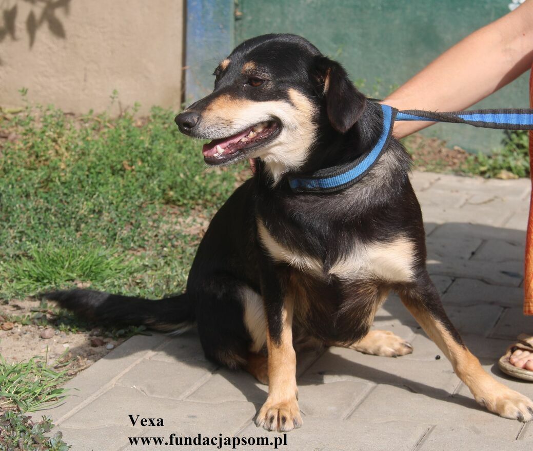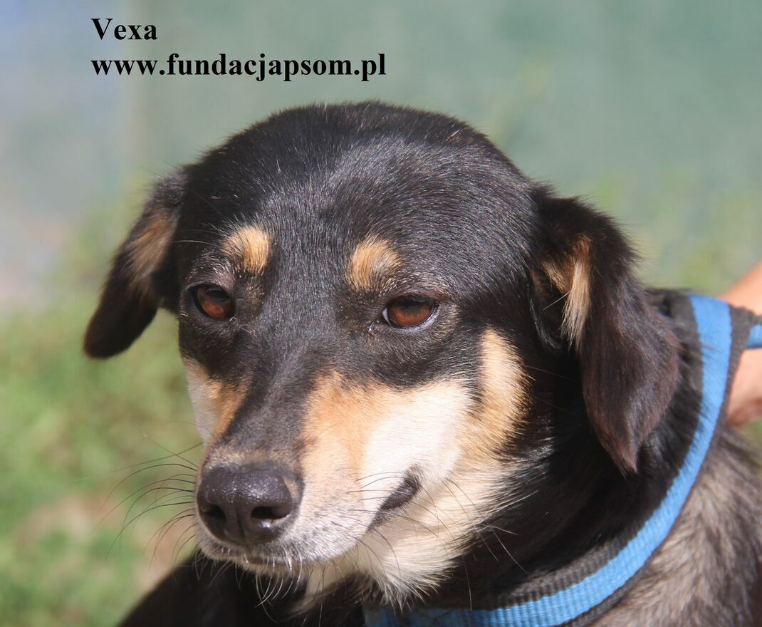 Vexa to sunia średniej wielkości, przyjaźnie nastawiona do człowieka, nieco wylękniona w pierwszym kontakcie, ale wyczekująca głaskania i przytulenia. Klasyczny kundelek, czarny podpalany o lśniącym futerku, niczym nie zwracający na siebie uwagi, niewidzialny …. A tak bardzo potrzebujący swojego człowieka. Pokochaj Vexę, a psina odwdzięczy się oceanem miłości. Vexa przyjechała do nas z Grodziska Maz.